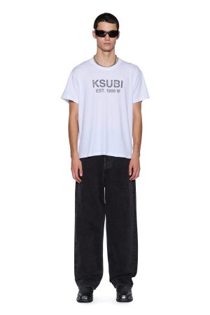 The State Slub Sid Tee SS Tee White is a classic. true to size t-shirt with short sleeves. featuring a binded neckline. flat-locked seams and a Ksubi rats tail. Cut from a premium cotton/hemp slub jersey in a white colour way. with Ksubi state printed artwork. Finished with Ksubi branded t-boxes.