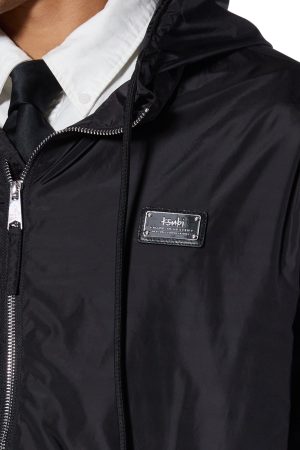 The Tek Nylon Jacket Black is a zip-through. water-resistant jacket with a fully lined interior and secure side entry pockets with zippers. Finished with a Ksubi-branded plaque on the chest and an adjustable hood.