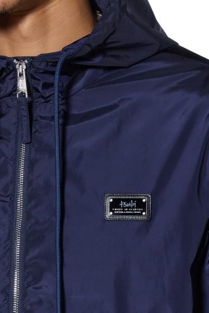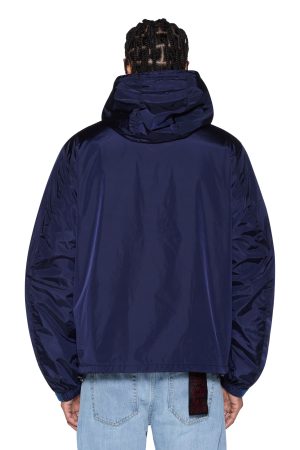 The Tek Nylon Jacket Navy is a zip-through. water-resistant jacket with a fully lined interior and secure side entry pockets with zippers. Finished with a Ksubi-branded plaque on the chest and an adjustable hood.