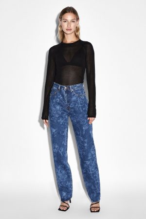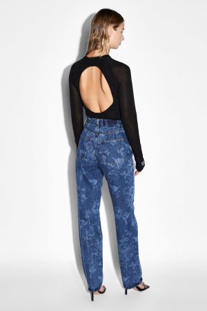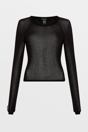 The Ultra Knit Top Black is constructed from viscose/nylon blend yarn in a sheer reverse jersey stitch. This body skimming. long sleeve knit top features a rib crew neck. rib cuff and hem with Ksubi t-box tonal embroidery.